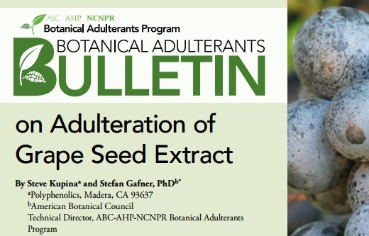 2Botanical Adulterants Program Bulletin on Adulteration of Grape Seed Extract. American Botanical Council website. http://cms.herbalgram.org/BAP/BAB/GrapeSeedExtractBulletin.html.