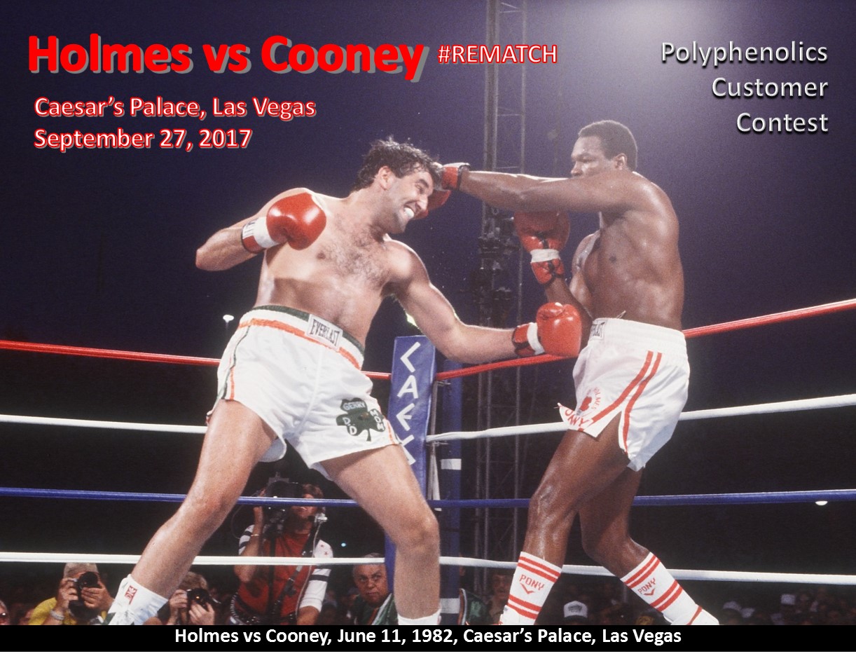 Contact Jessica.ornelas@cbrands.com or call 866-308-7678 to place your order and enter for your chance to witness this once-in-a-lifetime Polyphenolics-sponsored Holmes vs. Cooney rematch.